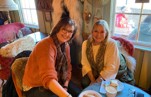 Vi kommer inn i varmen og finner oss et hyggelig bord med gode stoler med saueskinnspledd. Skikkelig hjemmekoselig plass. Hun som jobber her i dag er helt alene, da flere i staben har fått korona, så ho beklager at det er litt ventetid. Men vi er forståelsesfulle og sier ho må bare ta den tiden ho trenger. Vi har god tid og er bare ute og koser oss!
