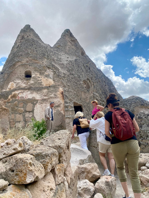 I dag er det den store utfluktsdagen, hvor vi skal besøke flere historiske steder. Alt fra Kaymakli, en underjordisk by på åtte etasjer, videre til Soganli dalen, en vakker, lokal favoritt. Vi skal spise lunsj i eplehagen til Yilmaz, som driver alt økologisk, og til slutt avslutter vi i Zelve-dalen - friluftsmuseumet, som er på Unesco's verdensarvliste.