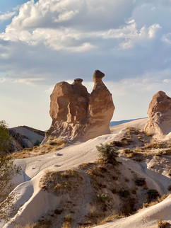 En av de mest berømte formasjonene i Devrent-dalen er Camel Rock, som ligner mye på en hvilende kamel. For meg kunne det like gjerne vært en snegle, med et stort skall på ryggen. Denne klippen har blitt et ikonisk landemerke, og mange poserer ved siden av. Vi ser "mennesker" på en fjelltopp, og Sheikan peker på "Tordenskjold hatt", og fornøyde setter vi oss i bussen igjen. Dagen har vært lang og innholdsrik! For en dag, - mettet med inntrykk!
