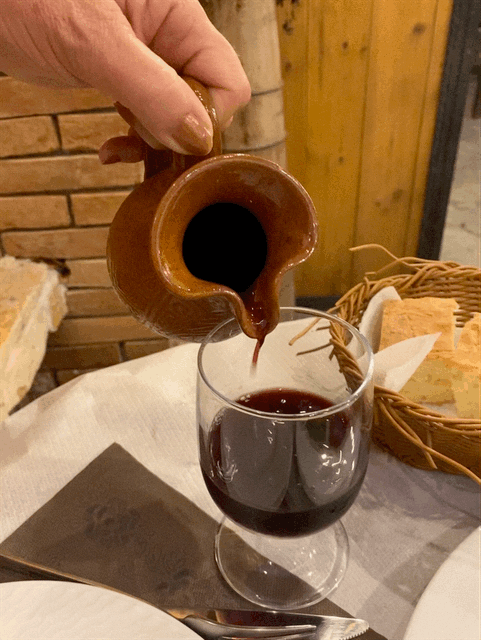 Vi bestiller maten, og det blir lam på meg, noe jeg har gleda meg til lenge. Jorunn velger karbonader, og vi bestiller også stekte grønnsaker, grønnsaker i ostesaus, vann, tonic og vin til meg, i en koselig keramikk-krukke.