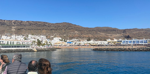 Vi ønsker å ta vannveien til Puerto Mogan, og se alle byene fra sjøsiden, der de ligger på rekke og rad vestover fra Arguineguin. Det går nemlig båt hver time, som svinger innom Anfi del Mar, før den ankommer Puerto Rico. Derfra går turen videre til "Gran Canarias Venezia", eller mest kjent som Puerto Mogan. Der har vi tenkt å tilbringe noen timer, for det er et sted som frister å stifte nærmere bekjentskap med.