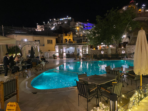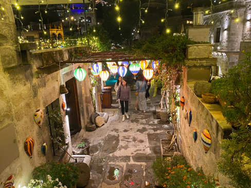 I dag venter nye eventyr, - vi skal besøke et helt spesielt konsepthotell, nemlig "Sacred House", det hellige huset, som ligger i Ürgüp. Et herskapshus som er 250 år gammelt og er bygget på ruinene av et gammelt gresk palass, og i en periode var det også en kristen kirke, som navnet vil tilsi. Stedet ble restaurert i 2001, og er inspirert av Dante, og konseptet er bygget opp rundt navnet "Heaven & Hell", - på godt norsk "Himmel & Helvete".