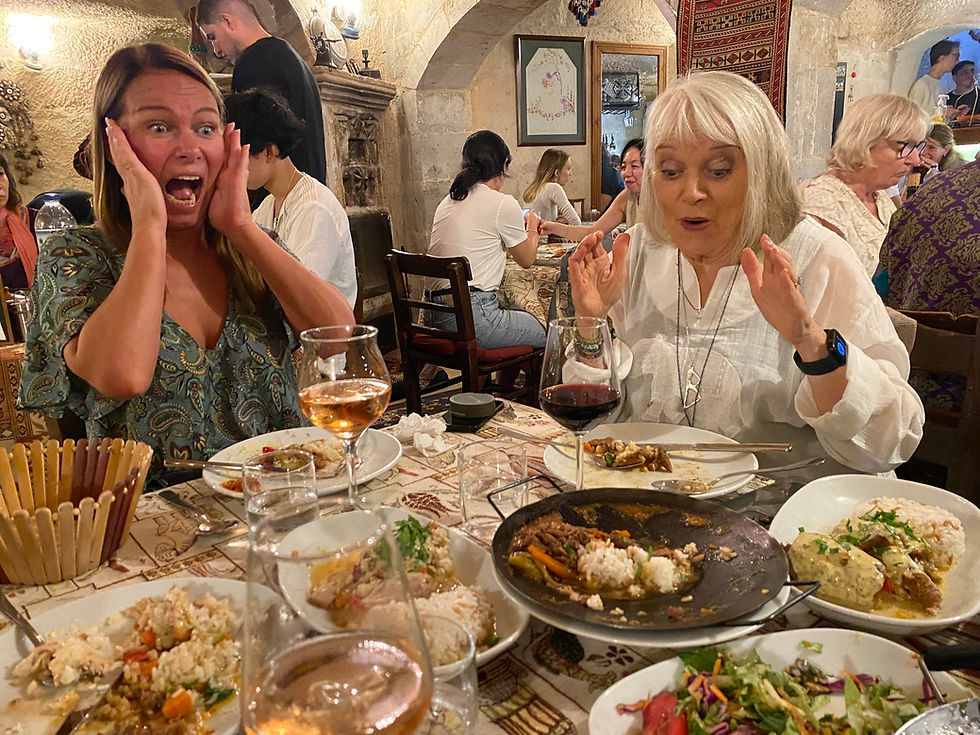 I kveld skal vi tilbake til Göreme, og Meretes favoritt-restaurant. Ikke så rart det, for den ligger på topp på lister over de topprangerte restaurantene i Kappadokia. Vi gleder oss!