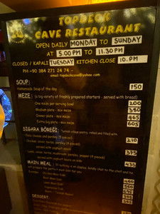 Som navnet tilsier, er dette en grotte-restaurant, og vi går ned trappene til denne lille og intime restauranten, som faktisk engang har vært en stall. Eieren og kokken, Mustafa, lager all maten av ferske ingredienser fra lokale bønder, så maten er autentisk, tyrkisk mat. Den hyggelige eieren og familien bor i etasjen over, og restauranten har bestått i over 20 år!