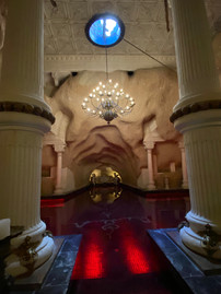 Trappene fører nedover og til slutt havner vi «helvete», hvor det er ganske så mørkt og dunkelt. Her nede slår varmen i mot oss, og nå er vi kommet ned i en stor steingrotte. Her er gigantiske søyler, som rammer inn varmtvanns-bassenget, som de kaller "Blood Pool", hvor vannet skinner rødt mot oss. Her er det også et lite hammam og massasjerom. Så her er det mulig å få seg både en spa-behandling og en svømmetur, og populært er det visst også...