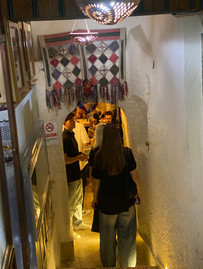 I kveld har vi spist i et familiehjem, og det føles litt sånn. Det var trangt i den lille grotte-restauranten, med bare 10 bord og mange som skulle serveres på en gang. Inne i denne grotta er det ingen vinduer, og noen gjester sitter på gulvet på puter og spiser ved et lavt bord. Veldig tyrkisk!